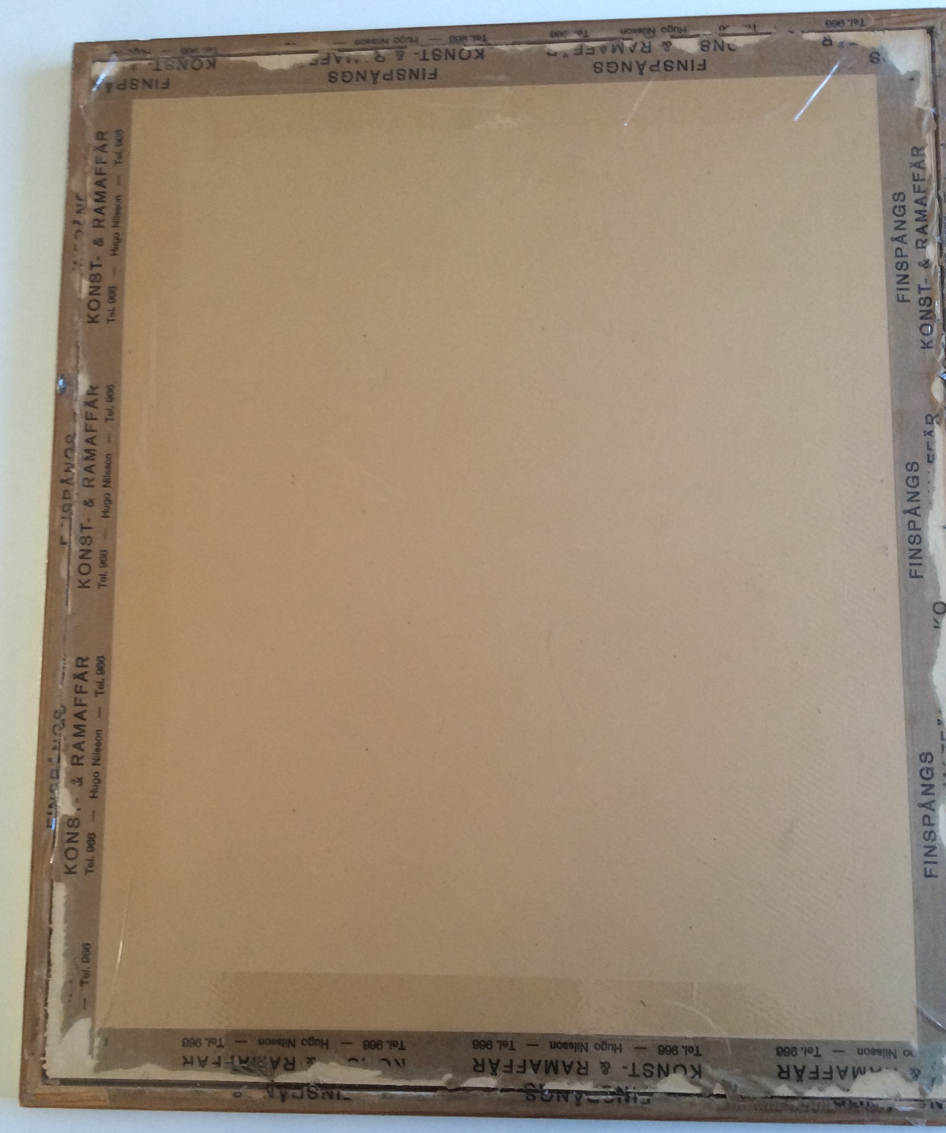 Det är en gammal inramning, gjord av ”FINSPÅNGS KONST – & RAMAFFÄR – Hugo Nilsson – Tel. 966”.