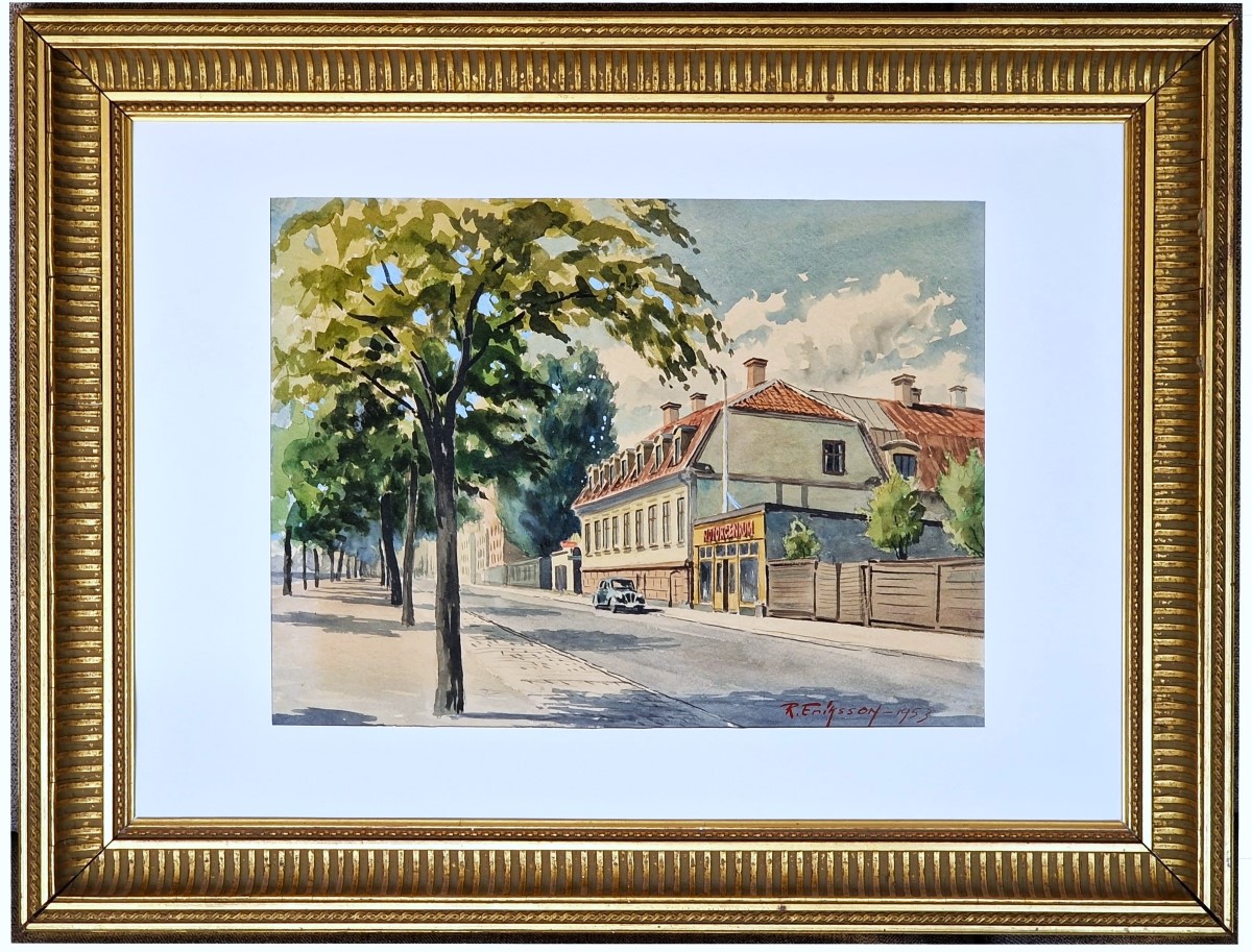 Egentligen skulle jag haft en kraftigare passepartout, tillskuren med rätt sorts verktyg. Men man tager vad man haver, eller för att citera Cajsa Warg korrekt, ”man tager om man så hafva kan”. Så länge man fokuserar på motivet är det okej, och jag är inte kräsen när det gäller det här. Detta är bra mycket bättre än att den ligger nerpackad mellan kartongskivor.
