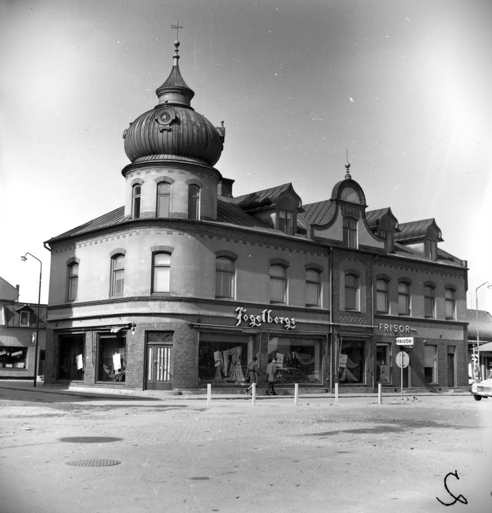 Fogelbergska är helt riktigt rivet. Blev själv nyfiken och letade lite till kring byggnaden. Därför vet jag nu att det revs samma år som den svartvita togs, 1964. Bara 2 år senare stod ett modernt EPA-hus klart.
