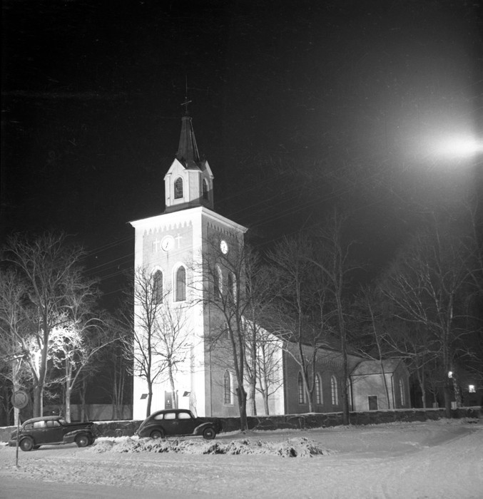 Men så hittade jag ett par bilder som bevisade att tornet varit vitt en gång. Den ena är dessutom från 1960, samma år som pappa signerat tavlorna.