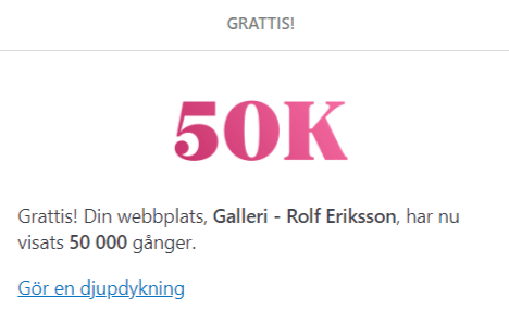 WordPress skickade en trofé idag. Pappas hemsida har uppnått 50 000 visningar! 🙂
