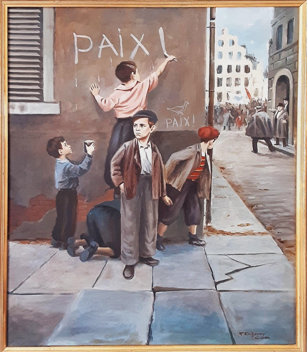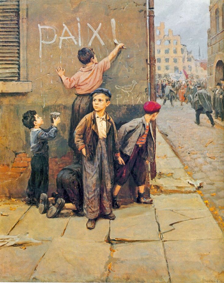 I den sovjetiska konsten under efterkrigstiden var målningar med temat kamp för fred och internationell solidaritet bland arbetande människor, mot imperialismen och hotet om ett nytt krig, samt utvecklingen av nationell befrielse och arbetarrörelsen utomlands relevanta. Detta tema, som skulle kunna kallas internationellt, fick sin första intensiva utveckling i den partiska ryska konsten från början av kalla kriget. De första bildliga angreppssätten på nya teman har förknippats med skapandet av genremålningar, vars scener hämtades från sovjetiska tidningsrapporter om strejker och demonstrationer utomlands. Ett exempel på detta tillvägagångssätt är Fjodor Pavlovitj Reshetnikovs berömda målning ”För fred!”, som tilldelades Sovjetunionens statspris 1951. Reshetnikov avbildade tydligt gatuarbetare i Paris förorter. Borta – en demonstration under röd flagg. Således var demonstrationen ideologiskt korrekt, och inte konstigt att den skingrades av polisen. I förgrunden – en grupp orädda barn som skriver det magiska ordet ”Fred” på väggen.
