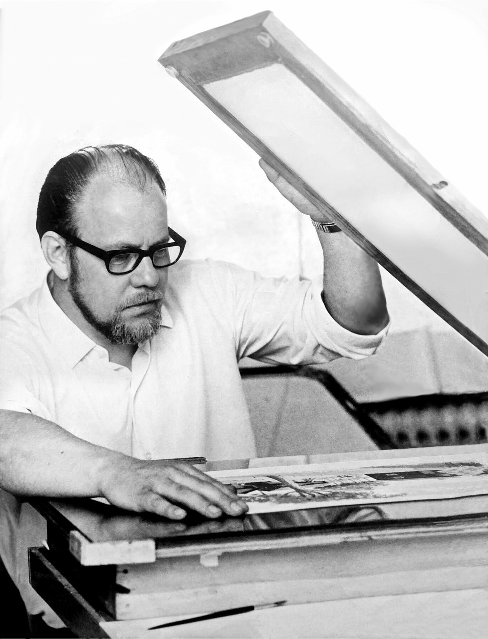 Men så småningom övergick han till serigrafi och screentryck, och byggde till slut själv sina egna tryckpressar. På så sätt blev han en helt självgående screentryckare. Under tiden i Finspång var han, som tidigare nämnts, mycket aktiv med just sina screentryck.